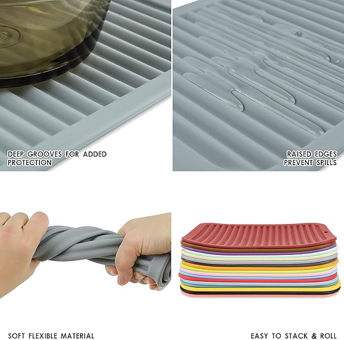 Smithcraft Silicone Trivets for Hot Dishes, Pots and Pans, Hot Pads for Kitchen, Heat Resistant Mat Quartz Countertops, Silicone Mats for Kitchen Counter, Table Pot Holders Trivet mat Set 2 Dark Grey