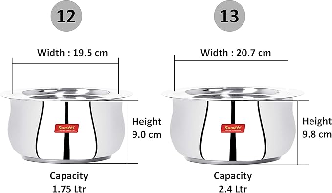 Sumeet Stainless Steel Cookware Set With Lid, 2.1, 2.6 Liters, 2 Piece (Steel)