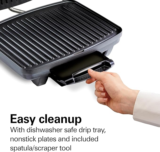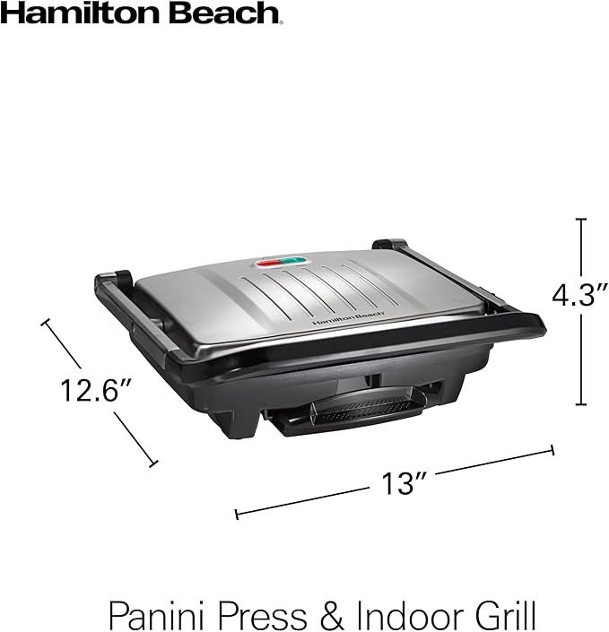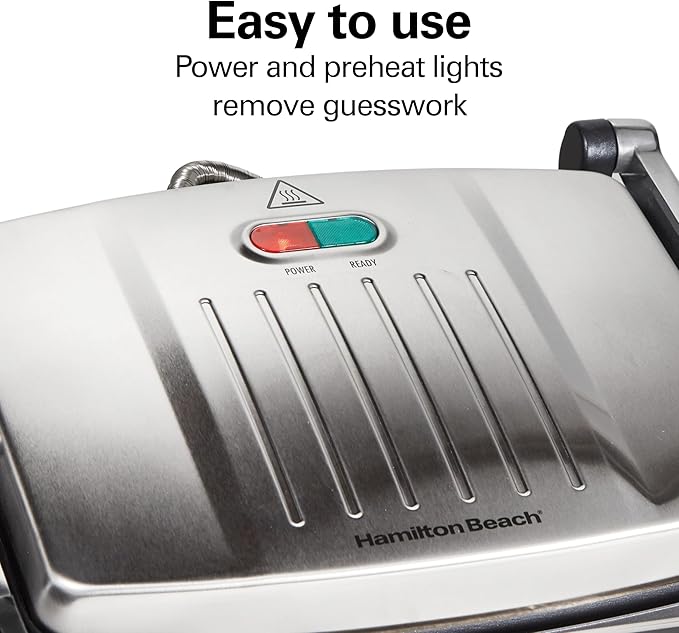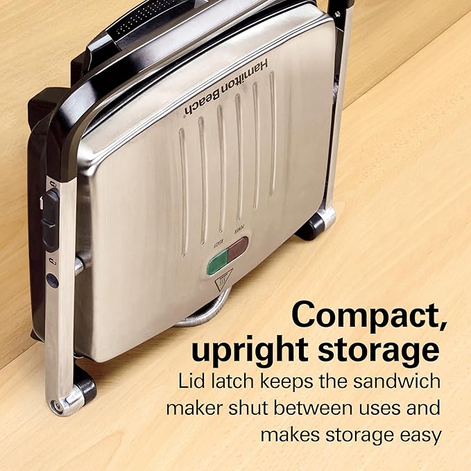 Hamilton Beach Panini Press, Sandwich Maker & Electric Indoor Grill, Upright Storage, Nonstick Easy Clean Grids, Stainless Steel (25410)