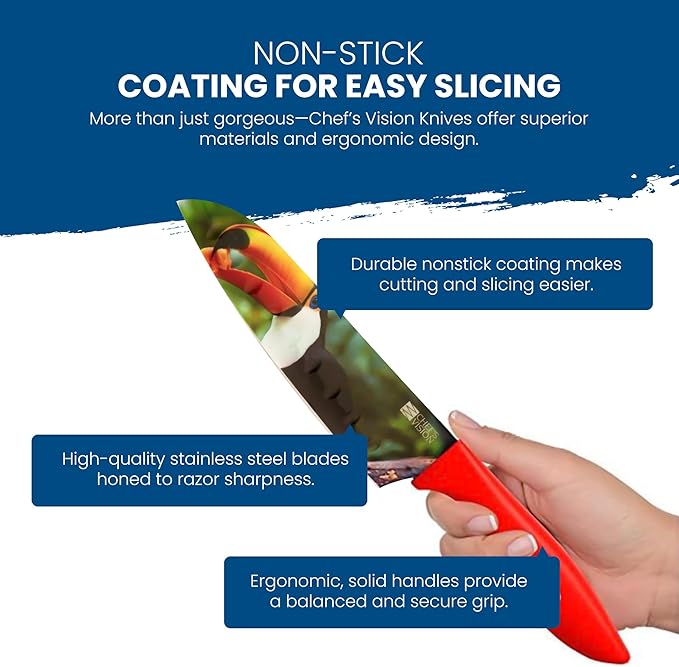 CHEF'S VISION Wildlife Knife Set-6-Piece Stainless Steel Cutting Knives Set for Kitchen with Stunning Animal Designs - Great Gift for Women or Men - Unique Kitchen Knife Set Gift for Nature Lovers
