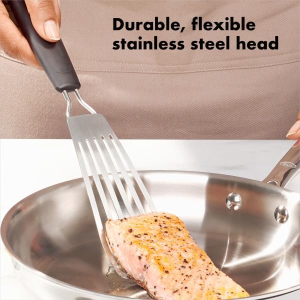 About This Ideal for lifting, turning and transferring whole fish filets and more Beveled edge slides beneath food Slots in... Read more