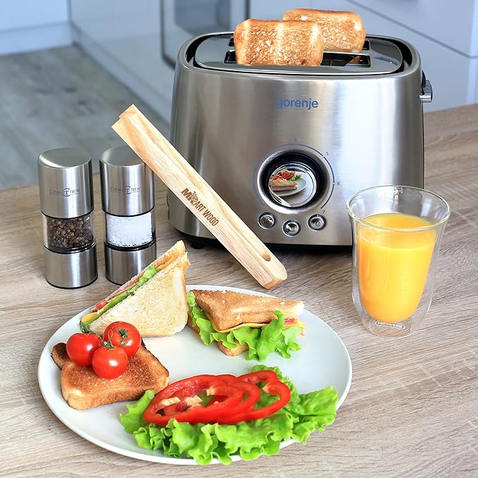 About This ELEGANT KITCHEN TOOL: Effortlessly grip toast, bagels, pancakes, bacon, or muffins with our slim and ergonomic wooden tongs.... Read more