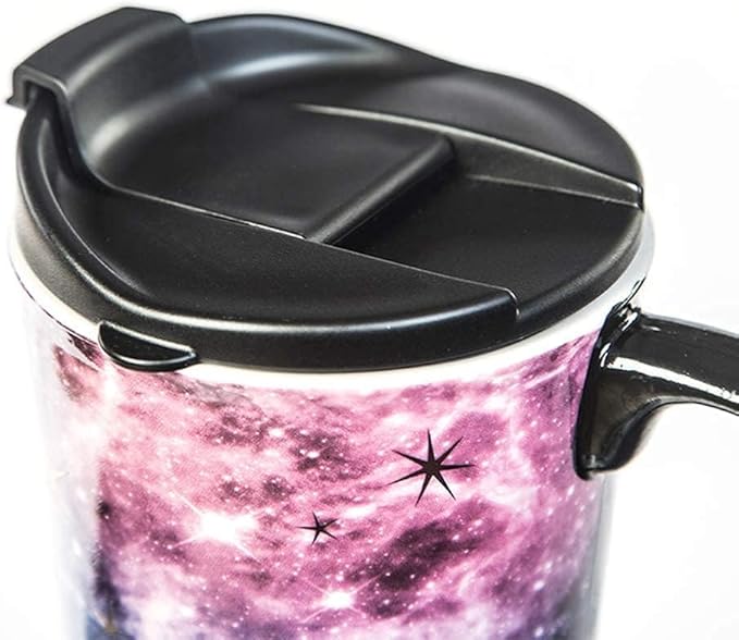 Topadorn Ceramic Travel Mug Coffee Cup 17 OZ., with Sealed Lid and Gift Box, Purple Starry Sky