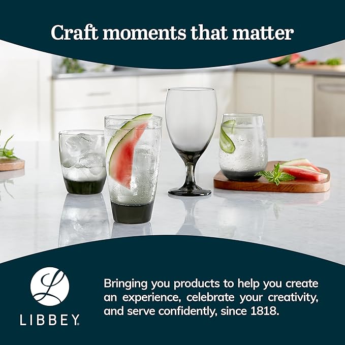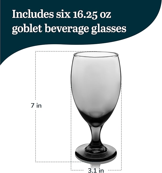 Libbey Classic Smoke Goblet Beverage Glasses, Set Of 6 Timeless Goblet Drinking Glasses - Dishwasher-Safe Glass Goblets for Wines, Smoothies & More