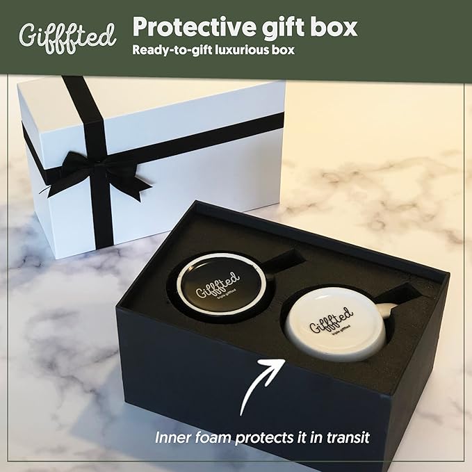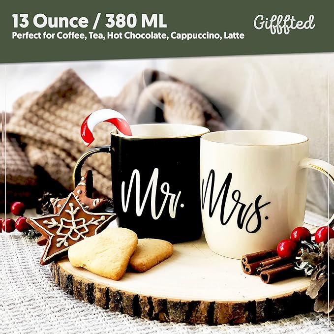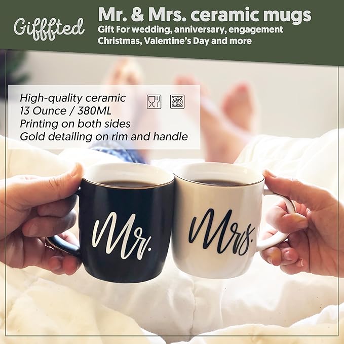 About This READY-TO-GIFT SET FOR COUPLES: A premium gift box holds this set of luxurious Mr. and Mrs. coffee mugs.... Read more