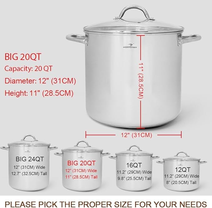 HOMICHEF Commercial Grade LARGE STOCK POT 20 Quart With Lid - Nickel Free Stainless Steel Cookware - Healthy Polished Stockpots - Heavy Duty Induction Soup Pot