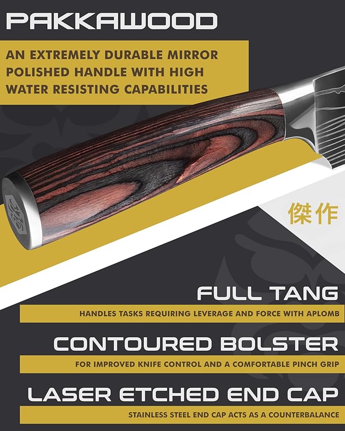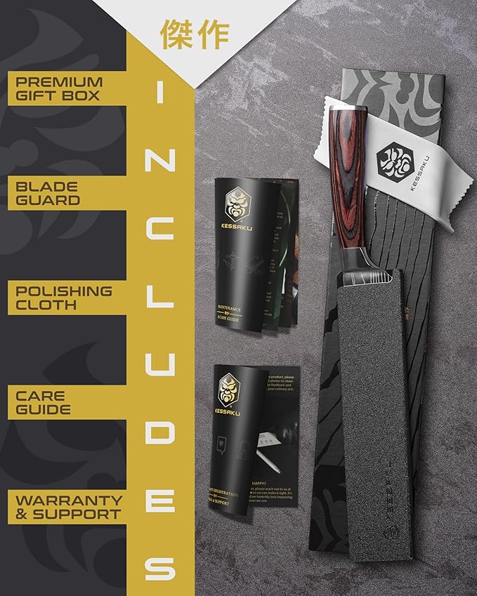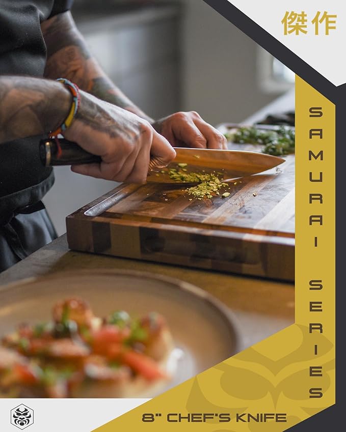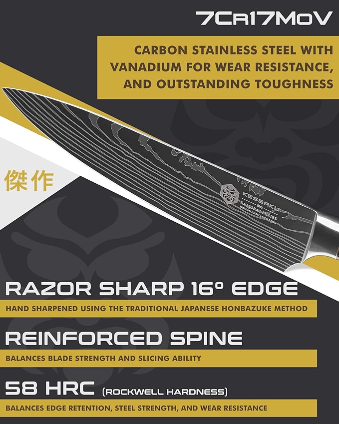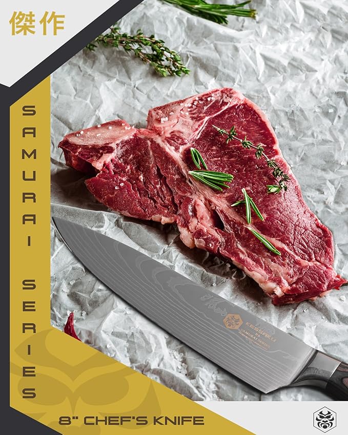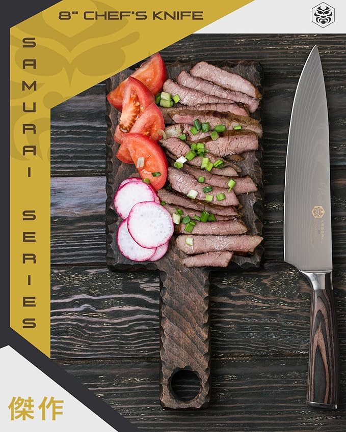 KESSAKU Chef Knife - 8 inch - Samurai Series - Razor Sharp Kitchen Knife - Forged 7Cr17MoV High Carbon Stainless Steel - Wood Handle with Blade Guard