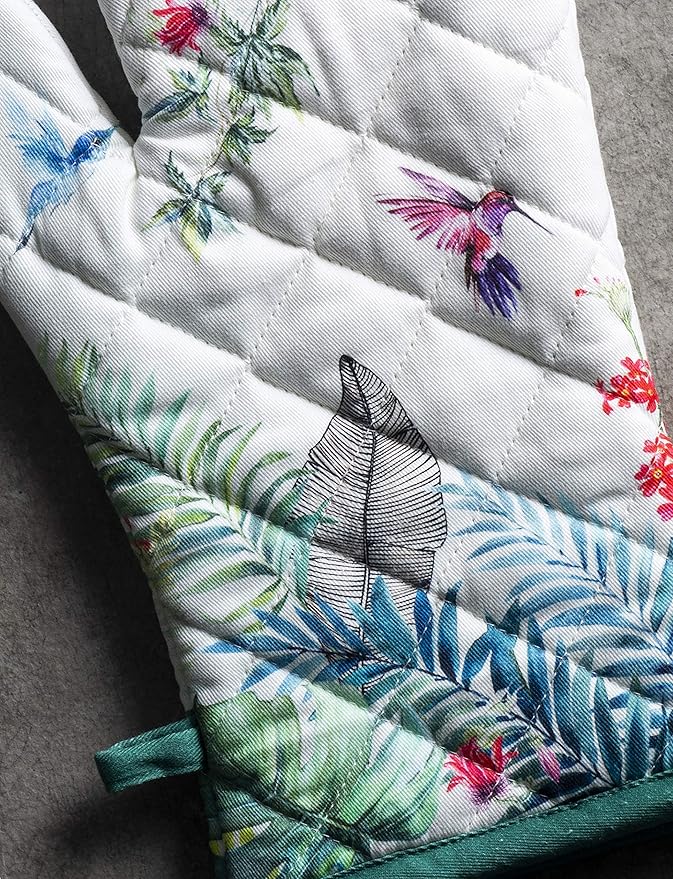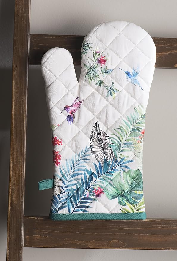 Maison d' Hermine Oven Gloves 100% Cotton Oven Mitt 7" x 13" with Loop Heat Resistant, BBQ, Cooking Gloves, Baking, Grilling, Kitchen, Handling Hot Pans Spring/Summer (Pack of 1, Tropiques)