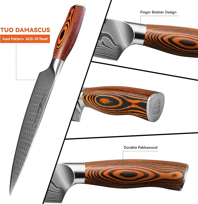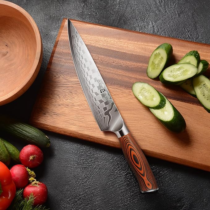 TUO 8" Chef Knife in Japanese Steel AUS-10, 67 Layers Damascus Kitchen Knife, High Carbon Steel Blade with Dragon Pattern & Pakkawood Handle