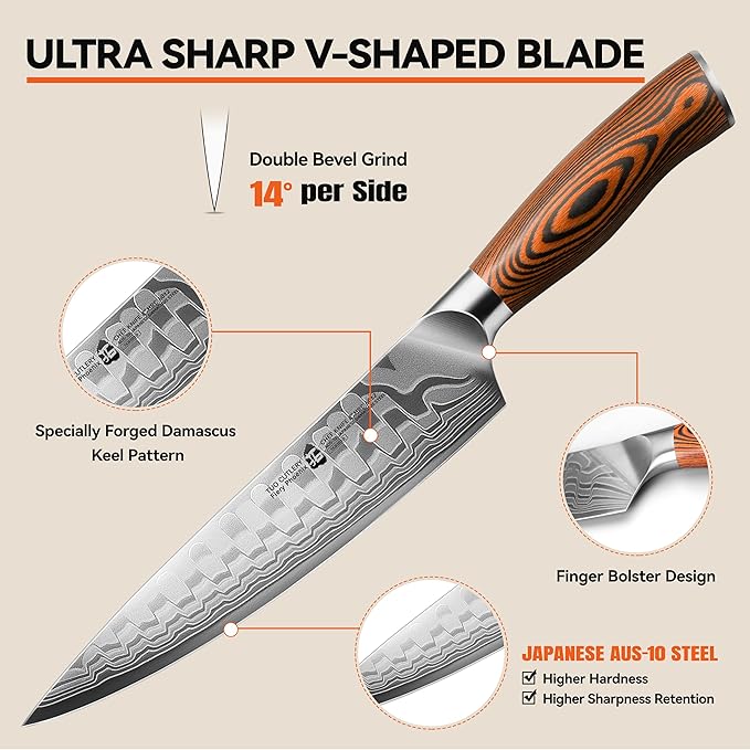 About This VERSATILE KNIFE: Among all kinds of a kitchen knife, a chef knife is the most versatile one in... Read more