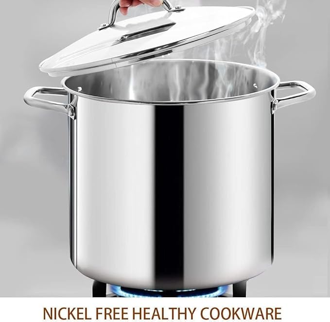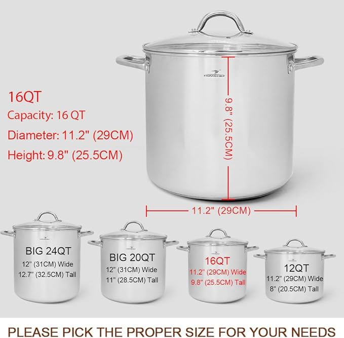 HOMICHEF 16 Quart LARGE Stock Pot with Glass Lid - NICKEL FREE Stainless Steel Healthy Cookware Stockpots with Lids 16 Quart - Mirror Polished Induction Cooking Pot
