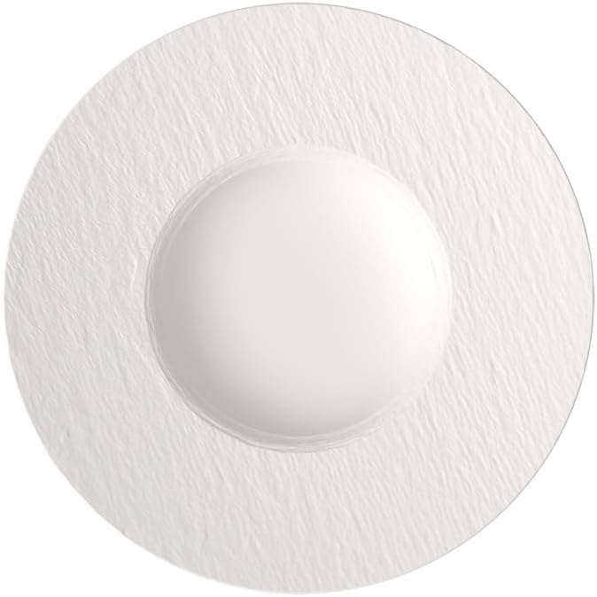 Villeroy & Boch Manufacture Rock Blanc Pasta Plate, Shallow Bowl, Premium Porcelain, Made in Germany, Dishwasher and Microwave Safe, Slate Look in Rich, Creamy, White,11.5 in