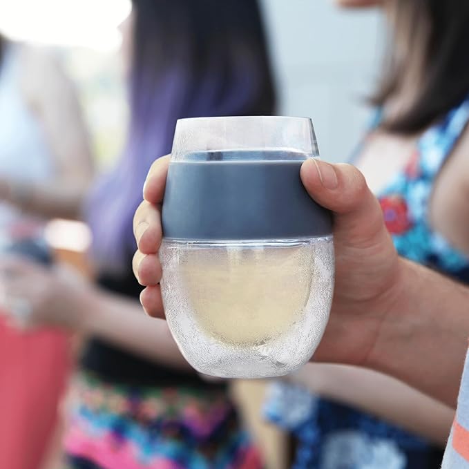 HOST Cooling Cup Plastic Double Wall Insulated Freezable Drink Chilling Tumbler with Freezing Gel Wine Glasses for Red and White Wine, 8.5 oz, Grey Set of 1