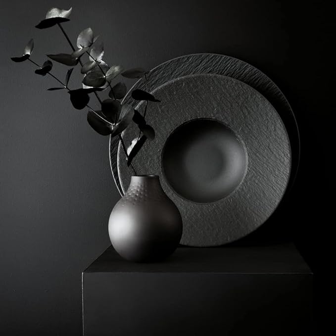 Villeroy & Boch Manufacture Rock Pasta Plate with Wide Rim, Premium Porcelain, Made in Germany, Matte Black, 11.5 in, 9.5 oz Capacity