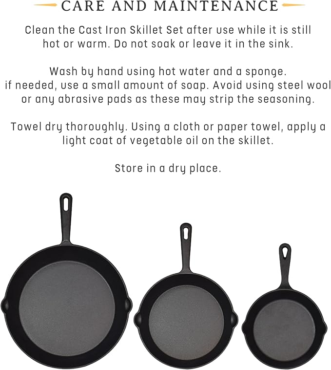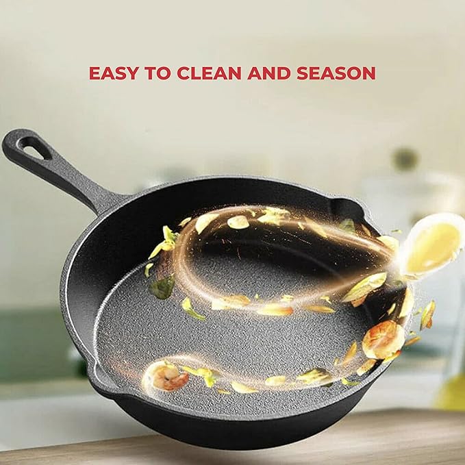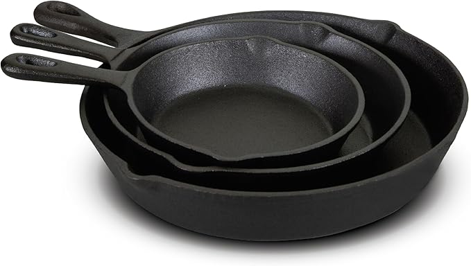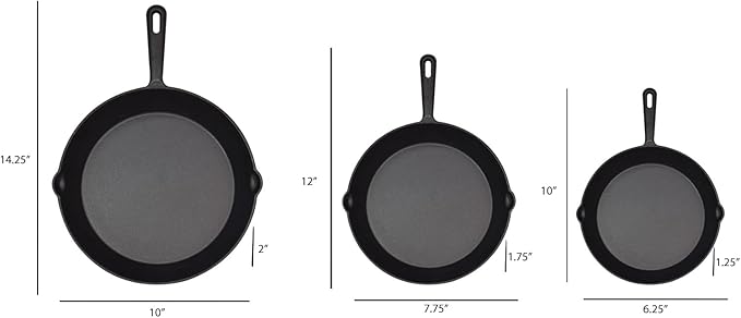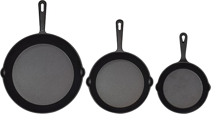 Jim Beam HEA Set of 3 Pre Seasoned Cast Iron Skillets with Even Distribution and Heat Retention-6" 8" 10", 10'', Black,JB0195