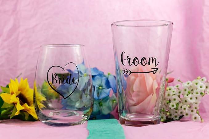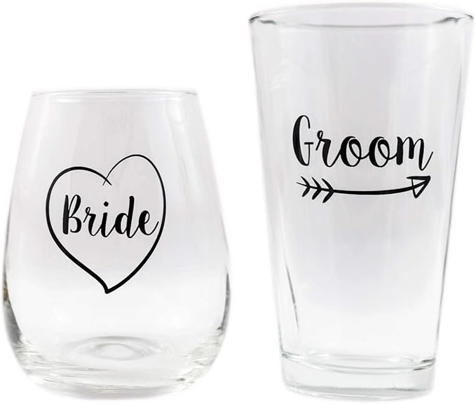 About This ENGAGEMENT GIFTS - Beer pint glass and wine glass combination sure to make the bride and groom smile.... Read more