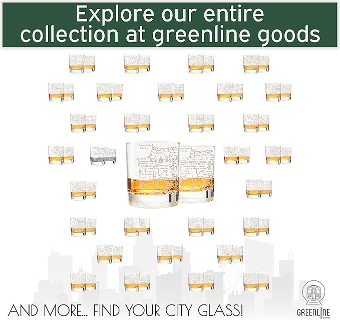 Greenline Goods Whiskey Glasses - 10 Oz Tumbler Gift Set for San Francisco lovers, Etched with San Francisco Map | Old Fashioned Rocks Glass - Set of 2