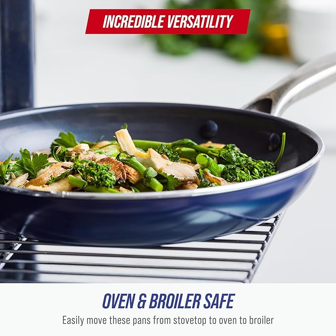 Blue Diamond 10 Piece Nonstick Cookware Set, Diamond Ceramic Pots & Pans, Dishwasher & Metal Utensil Safe, Non Toxic PFAS-Free, Kitchen Cooking Sauce & Saute Pans, Oven & Broiler to 600F, Blue