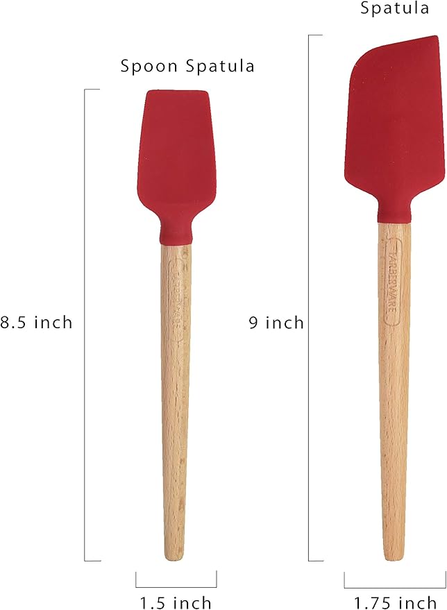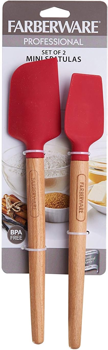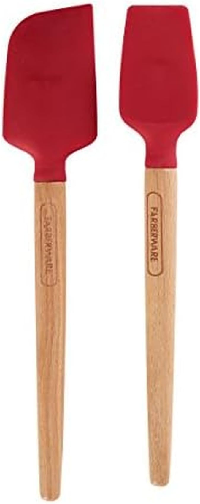 Farberware 5216385 Professional Heat Resistant Silicone Spatula with Wood Handle-Safe for Non-Stick Cookware, Set of 2, Red