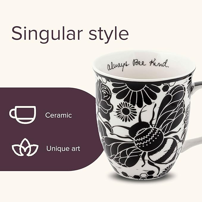 Karma Gifts 16 oz Black and White Boho Mug Bee - Cute Coffee and Tea Mug - Ceramic Coffee Mugs for Women and Men, 1 Count (Pack of 1)