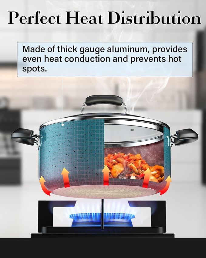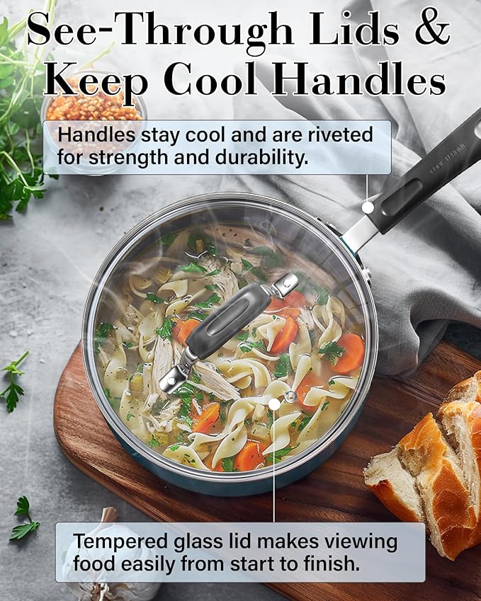 About This Multi Use Cookware Set: 12 Piece nonstick pots and pans set includes: 1.5 and 2 quart saucepans with... Read more