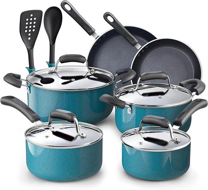 Cook N Home Pots and Pans Nonstick Cookware Set 12-Piece, Kitchen Cooking Set with Frying Pans and Saucepans, Induction Compatible, Turquoise