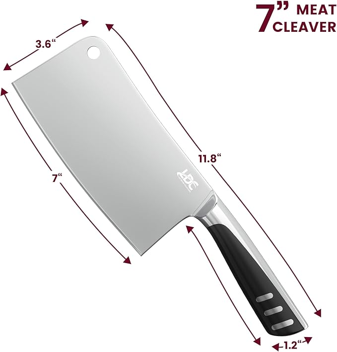 LDC Meat Cleaver Heavy-Duty 7" Inch Knife - High-Carbon Stainless Steel Chef Knife for Meat and Vegetables - Butcher Bone Cutting Knife for Home and Restaurant Use