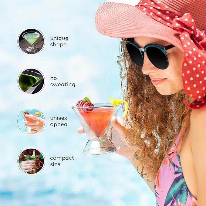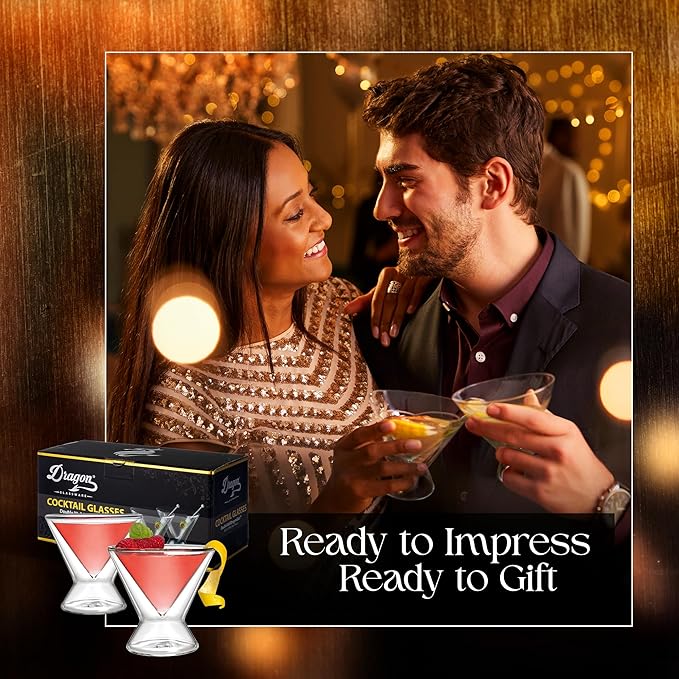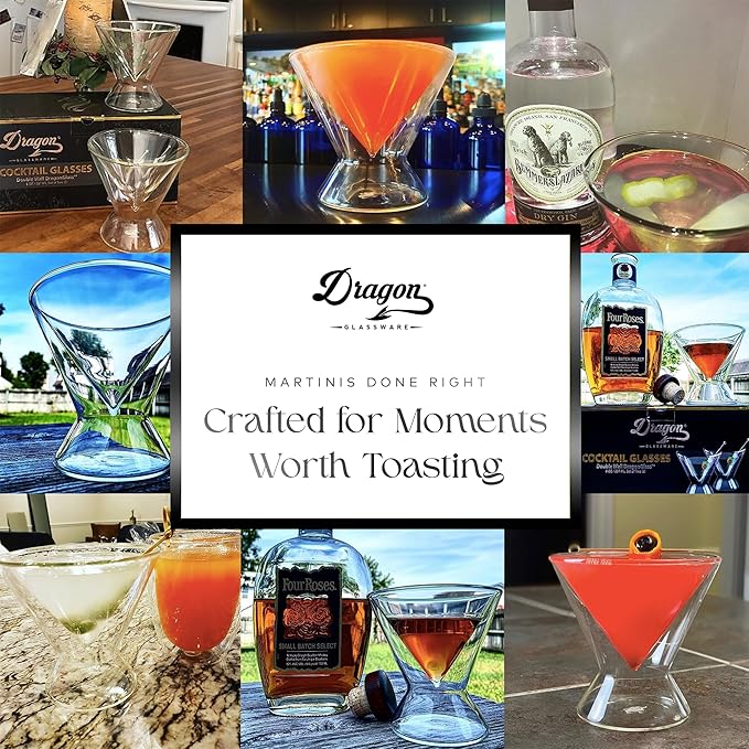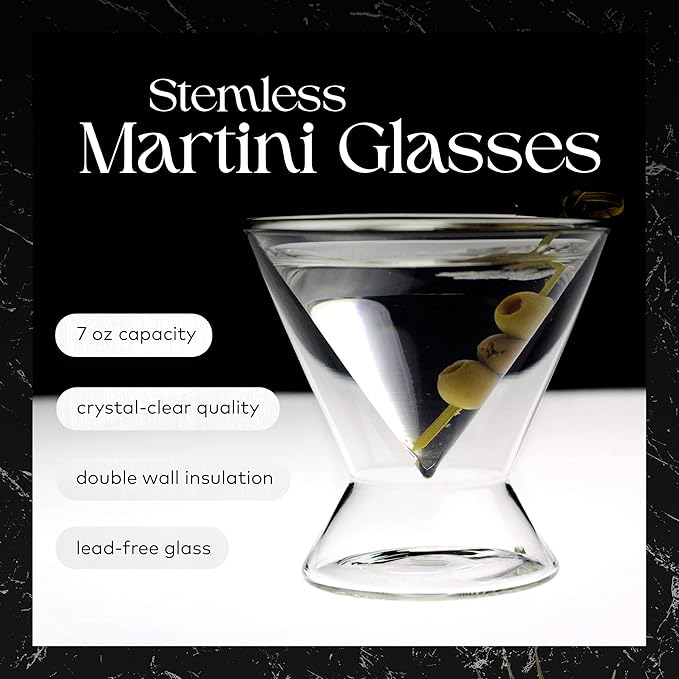 Dragon Glassware Stemless Martini Glasses - 7 oz Clear Set of 2 - Double Wall Insulated Cocktail Glass Set - Unique and Fun Gift for Espresso Martini Lovers