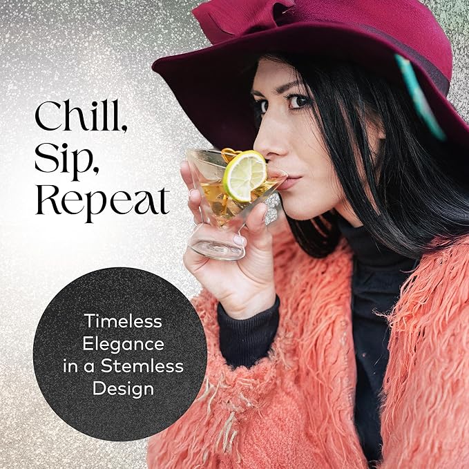 About This Stemless Martini Set: An elegant shape made for chilling drinks, this stemless martini glass set holds 7 ounces... Read more