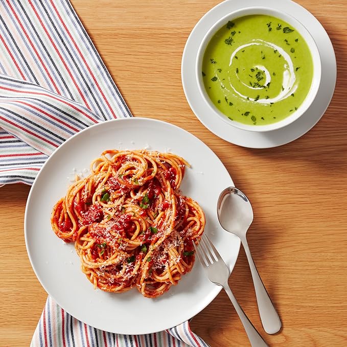 Amazon Basics Dinnerware Set, Microwave and Dishwasher Safe, Service for 6, 18-Piece Complete Kitchen, Plates, Dishes, Bowls, White Porcelain Coupe