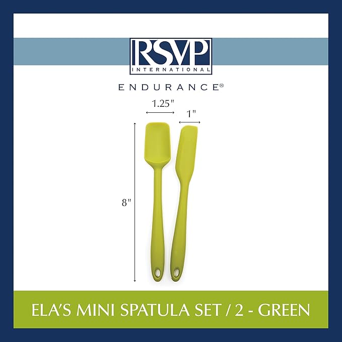 RSVP International Ela's Favorite Silicone Spatula, Green, 8" | BPA-Free Silicone | Scrape Batters, Flip Eggs, Ice Cakes, & More | Dishwasher Safe & Heat Resistant | Cooking, Baking & More