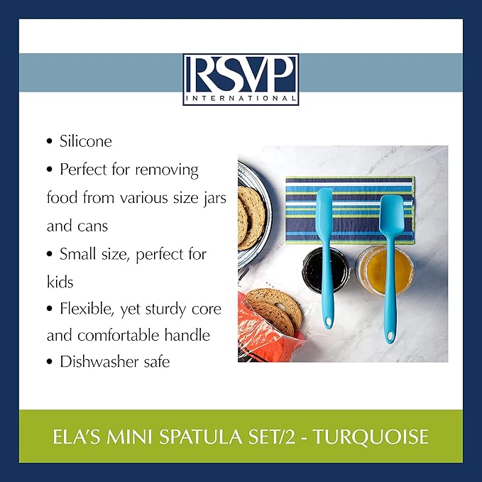 RSVP International Ela's Favorite Silicone Spatula, Turquoise, 8" | BPA-Free Silicone | Scrape Batters, Flip Eggs, Ice Cakes, & More | Dishwasher Safe & Heat Resistant | Cooking & Baking