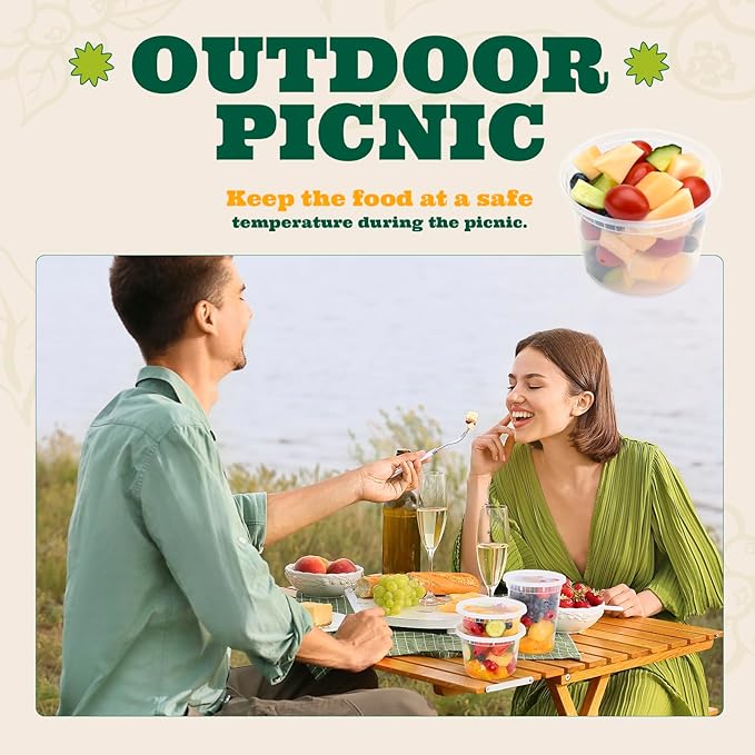 Glotoch 48 Pack 16 oz. (2 Cups/1 Pint) Plastic Food and Drink Storage Containers Set with Lids - Microwave, Freezer & Dishwasher Safe Eco-Friendly, BPA-Free, Reusable & Stackable