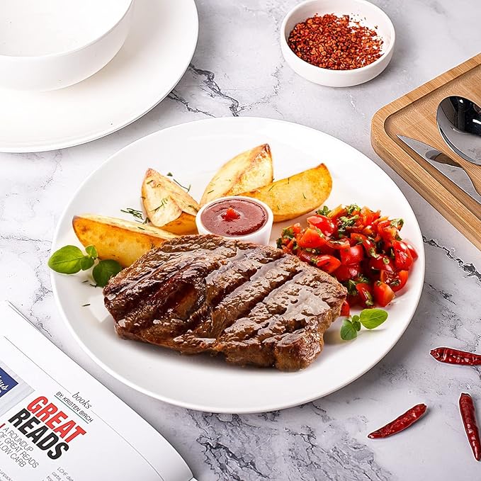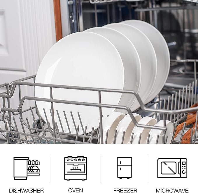 DELLING 10 inch White Dinner Plates Set, Porcelain Dessert/Salad Plate, Serving Dishes, Dinnerware Sets, Scratch Resistant, Lead-Free, Microwave, Oven, and Dishwasher Safe - Set of 4