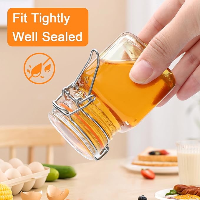 Encheng 4 oz Glass Jars With Airtight Lids And Leak Proof Rubber Gasket,Small Mason Jars With Hinged Lids For Kitchen, Mini Spice Jars With Twine And Tags Labeling 30 Pack