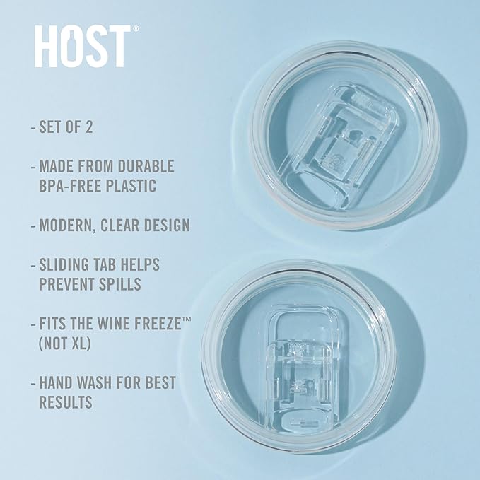 Host Wine Freeze Replacement Lids for Tumblers - Set of 2, Sliding Tab Closure, Travel Cup Lid for Wine Freeze Cooling Cup, Clear
