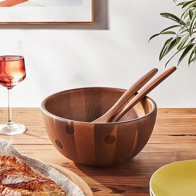 Kate Spade New York Deco Dot Salad Bowl with Servers, 1.85 LB, Brown