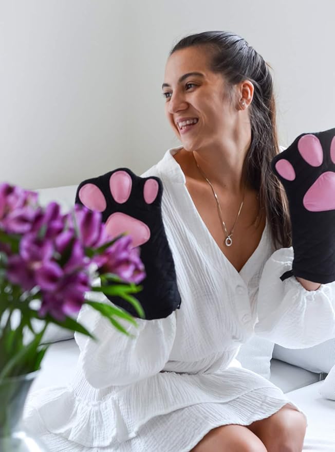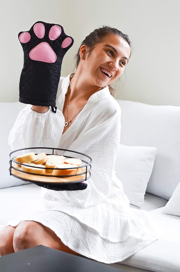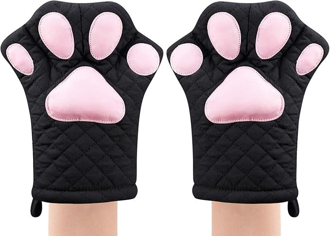 Oven Mitts,Cat Design Heat Resistant Cooking Glove Quilted Cotton Lining- Heat Resistant Pot Holder Gloves for Grilling & Baking Gloves BBQ Oven Gloves Kitchen Tools Gift Set BBQ,Microwave (Black)