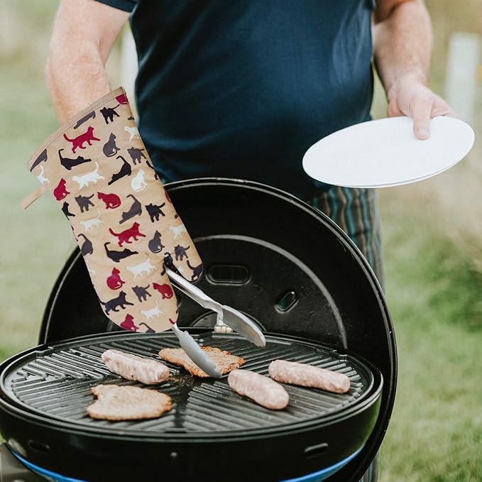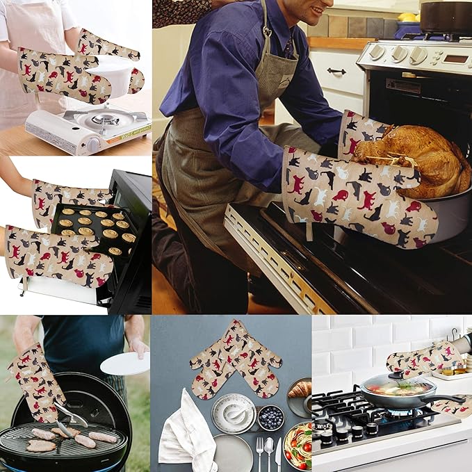 RED LMLDETA Oven Mitts Gloves 1 Pair Heat Resistant 480 ℉ Non Slip Clear Silicone Printed Comfortable Cotton Lining Kitchen Women Men Cooking Barbecue Microwave Machine Washable (Cat, Khaki Mittens)