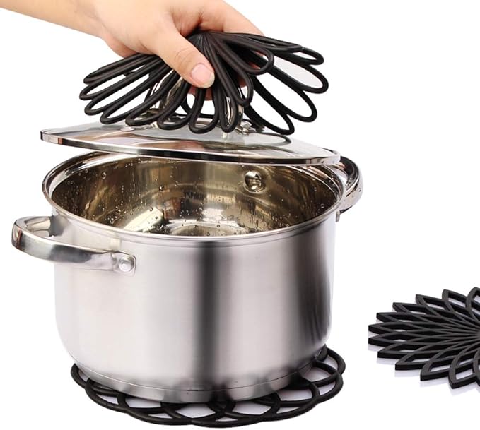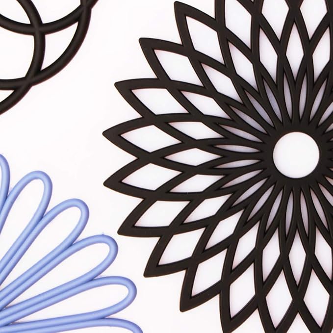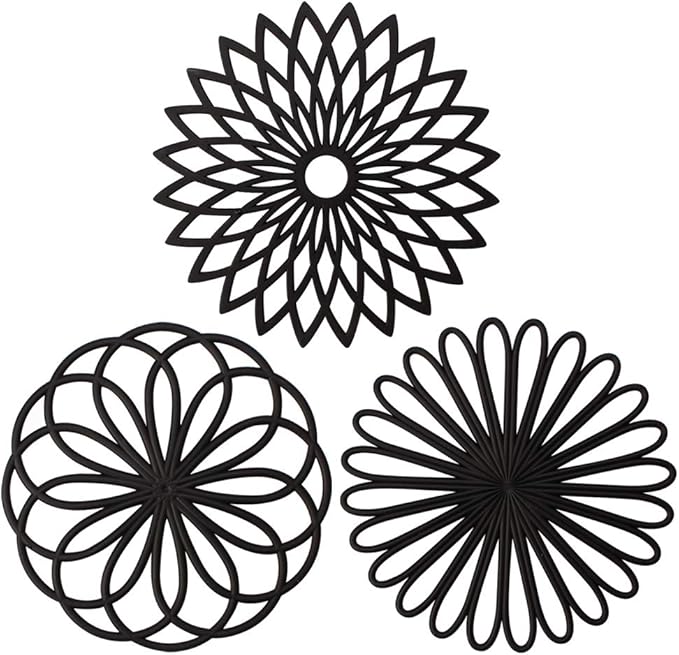 ME.FAN Silicone Trivet Mat - Kitchen Hot Pads for Pots & Dish - Insulated Teapot Trivet - Flexible, Durable, Non-Slip Large Coasters 3 Set Black