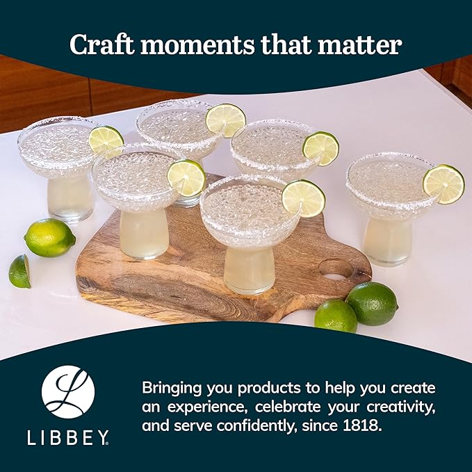 Libbey Stemless Margarita Glasses Set of 6, 10.25 ounces Classic Margarita Glasses Lightweight, Fancy Glassware Set for Celebrations