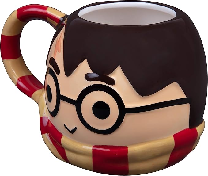 Harry Potter Figural Coffee Mug, 24 oz - Cute Chibi Design with Gryffindor Scarf Handle - Ceramic
