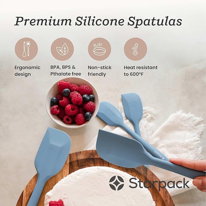 StarPack 'Scrape & Stir' Silicone Spatula Set (4 Pcs) - Heat Resistant Spatula Set 600°F - Food Grade Kitchen Spatulas - Nonstick Silicone Baking & Cooking Spatulas - Rubber Turner Set for Kitchen Use