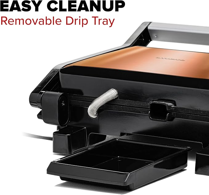 OVENTE Electric Panini Press Sandwich Maker with Non-Stick Coated Plates, Opens 180 Degrees to Fit Any Type or Size of Food, 1000W Indoor Grill Perfect for Quesadillas, Burgers & More, Copper GP0620CO