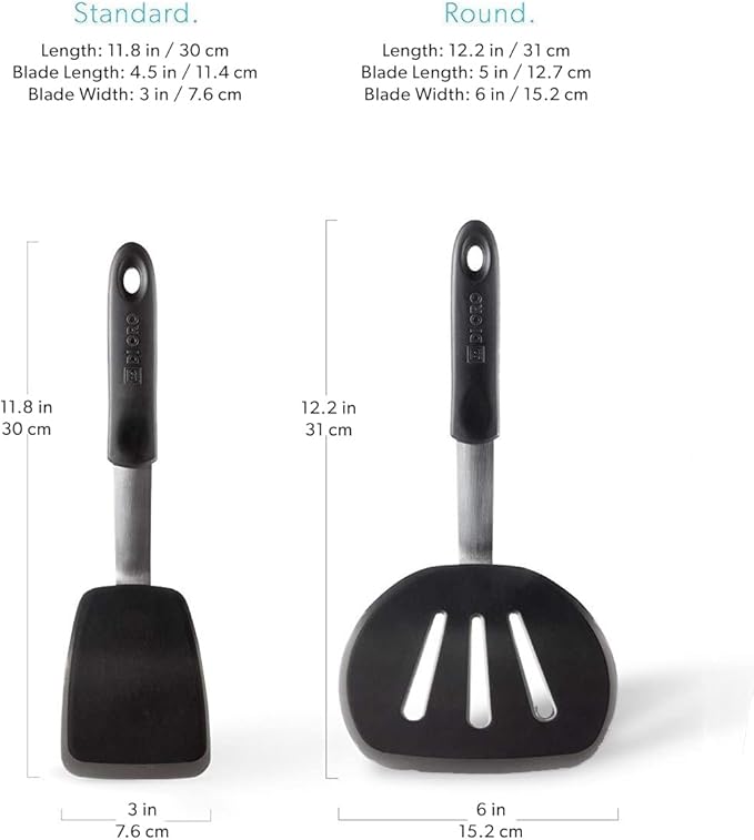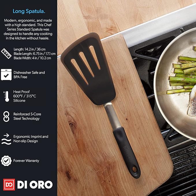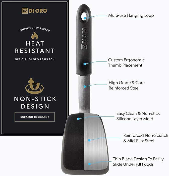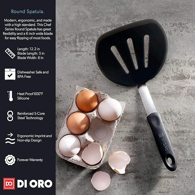 DI ORO Silicone Turner Spatula Set - Kitchen Spatulas for Nonstick Cookware - Flexible & Thin Flippers for Eggs & Pancakes - 600°F Heat-Resistant & BPA Free Cooking Utensils (2pc, Black)