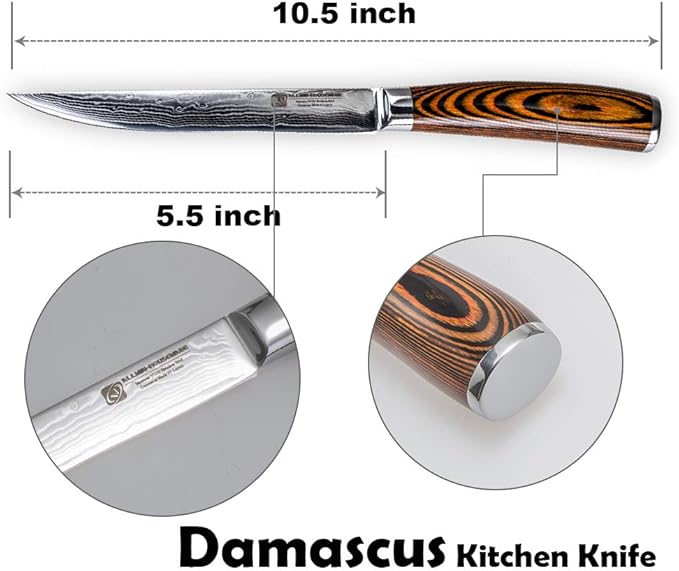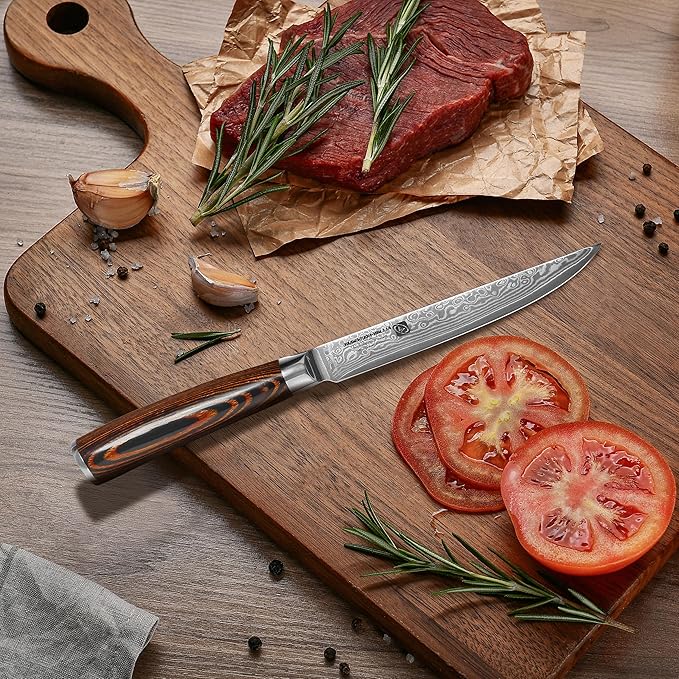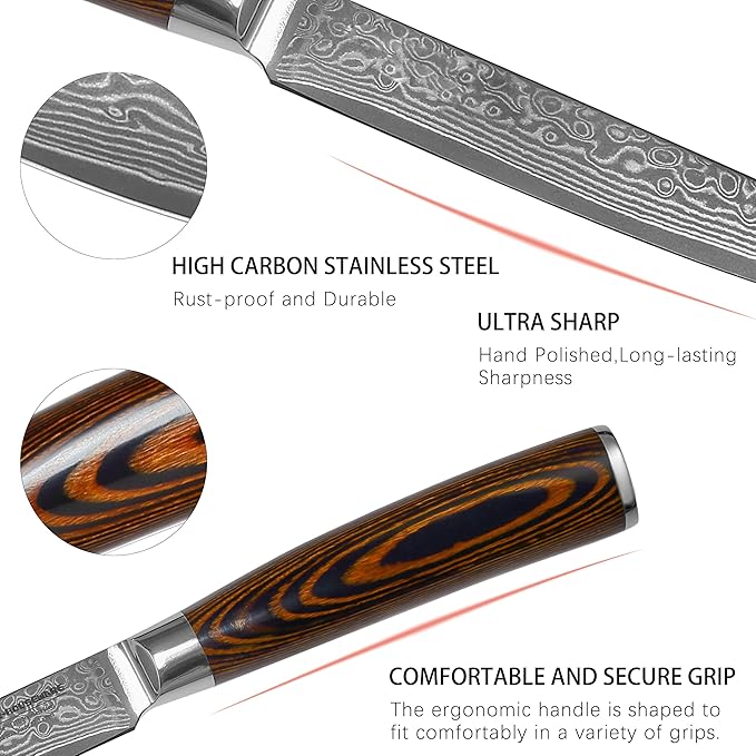 Damascus Utility Knife 5.5" Chef Knife Kitchen VG10 Stainless Steel Core 67-Layer Hand Forged Razor Sharp Edge Ergonomic Handle Precision Slicing Boning Trimming Carving Gift Idea