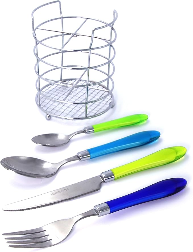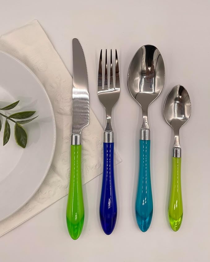 The Original Brink House Sea Blue Green Mix & Match Stainless Steel Cutlery Set with Translucent Handles / 16 pieces with Metal Stand/Lifestyle utensils set for home, apartment, dorm, outdoor events