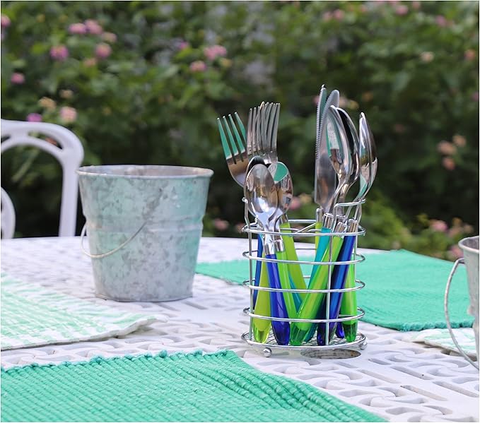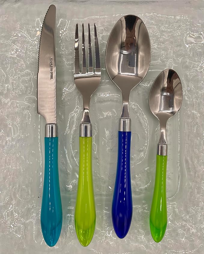 About This MIX AND MATCH ASSORTMENT of unique Blue Green eating utensils includes 4 forks, 4 knives, 4 tablespoons, and... Read more