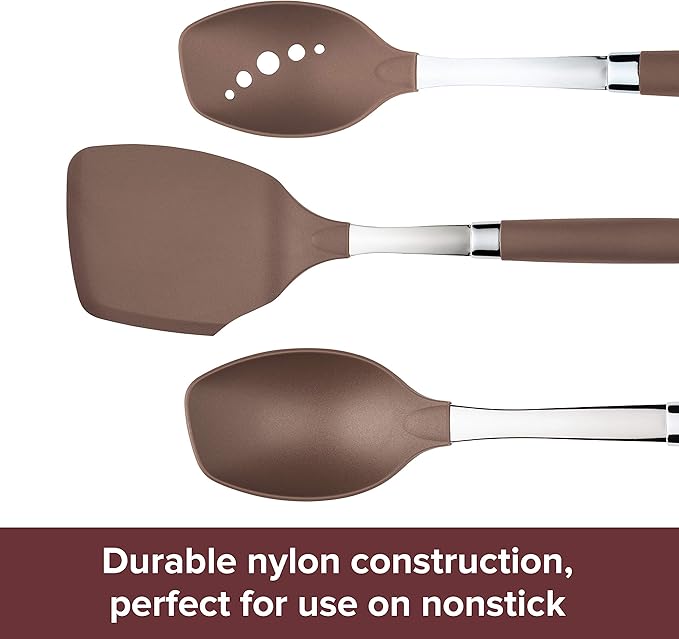 Anolon SureGrip Dishwasher Safe Nonstick Locking Cooking Tongs Set/Salad Serving Tools, 9 Inch and 12 Inch, Bronze Brown