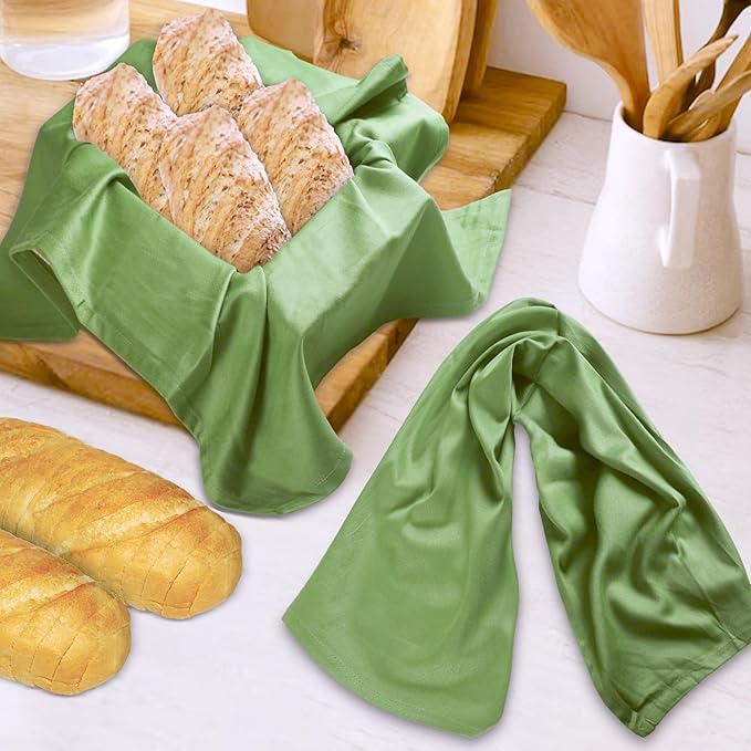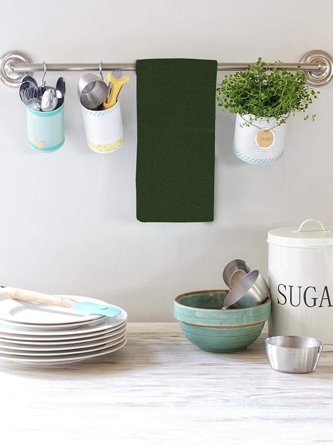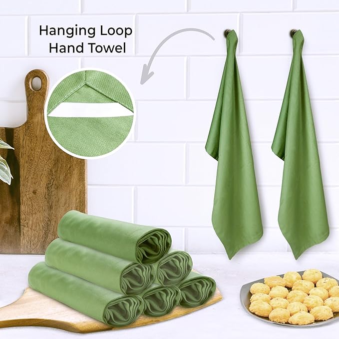 Urban Villa Kitchen Towels 100%Cotton Green Color Dish Towels for Kitchen with Hanging Loop Size 20x30 inches(Set of 6) Highly Absorbent Quick Drying Soft Premium Quality Dish Towels&Dish Cloths Sets